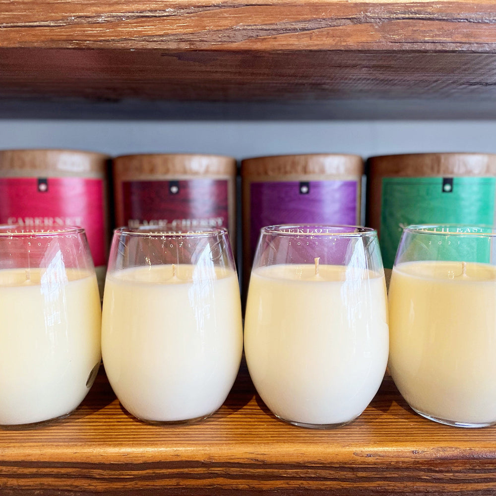 Our Wine Collections features 4 invigorating scents that capture the true smell of wine. These candles make for the perfect gift with their reusable stemless wine glass.